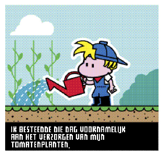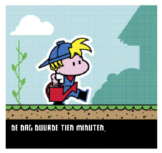 Deze strip is in 'vector' getekend. Behalve een heel ander uiterlijk dan met penseel getekende strips, betekent dat ook dat de tekeningen traploos te vergroten en te verkleinen zijn, zonder dat het onscherp wordt.