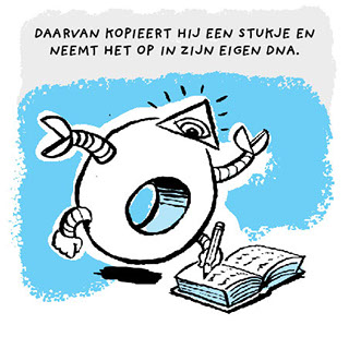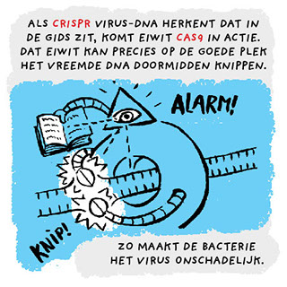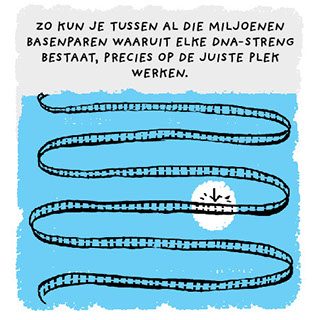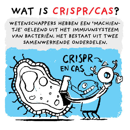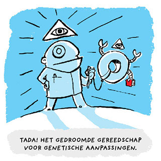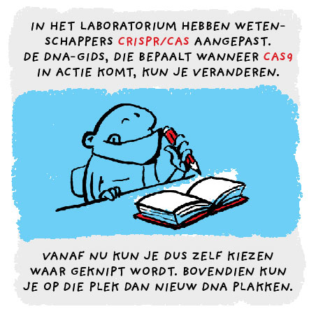 Strip voor een artikel in de Correspondent, waarin wordt uitgelegd wat CRISPR/CAS is en wat de implicaties zijn. De strip legt uit hoe de grensverleggende techniek werkt.